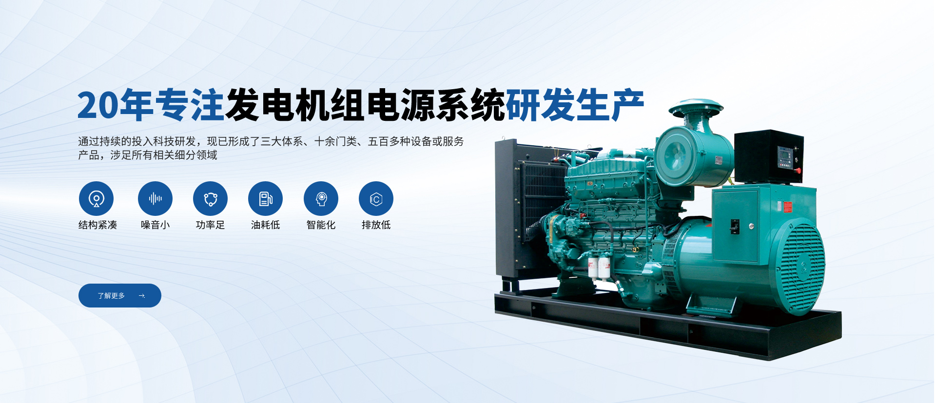 公司一直專注于高品質(zhì)發(fā)電機(jī)組及配套設(shè)備的研發(fā)、生產(chǎn)、銷售和售后服務(wù),致力于為用戶提供完美的產(chǎn)品和服務(wù)。從全球知名配套廠商優(yōu)選零部件及組件,優(yōu)勢組合,打造名牌發(fā)電機(jī)組產(chǎn)品。公司在全國設(shè)立多處銷售服務(wù)網(wǎng)點(diǎn),體系遍布全國大中城市。